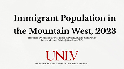 11-21-2025Our presentation, based on research conducted with Brookings Mountain West here at UNLV, will focus on the economic and workforce contribution of immigrants and international students. We will present data from our recently published fact sheet, “Immigrant Population in the Mountain West, 2023”, which derives data from the 2025 American Immigration Council (AIC) report “Map the Impact.” Our presentation will include state-level data on immigrant population, labor force participation, and economic contributions as of 2023. We will present three data tables that highlight data on each Mountain West State: Table 1 provides the number of Immigrant Residents, Immigrant Share of Population, Immigrant Spending Power, and Immigrant Taxes Paid. Table 2 presents an overview of international students’ presence and economic impact. Table 3 presents the top five industries with the largest shares of immigrant workers. Our research highlights three key takeaways about the Mountain West: Among the Mountain West states, Nevada (19.2%) reported the largest immigrant population share in 2023. In 2023, Construction ranked as the industry with the largest share of immigrant workers in Nevada (35.8%), New Mexico (24.2%), Colorado (20.7%), and Utah (8.9%), while Agriculture held the highest share in Arizona (29.3%). Arizona reported the highest number of jobs supported by international students (8,196) among Mountain West states in 2023. These key findings highlight the significant economic and labor force contributions made by immigrants and international students in the Mountain West